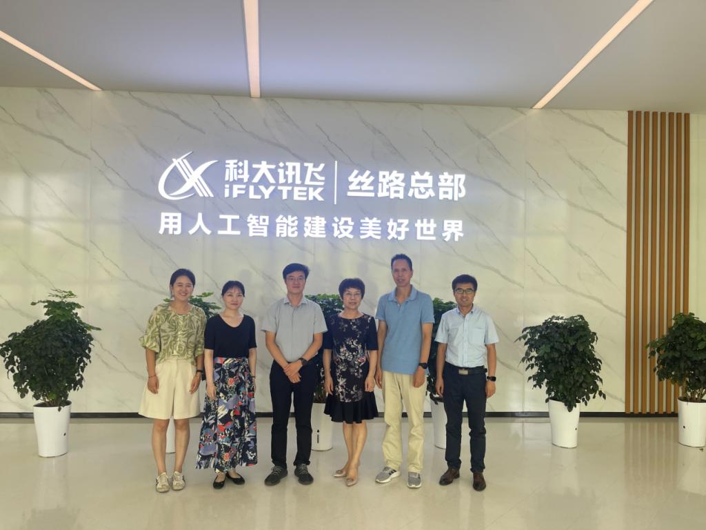 在赴科大讯飞西安总部的调研中,团队成员首先参观了科大讯飞的智能语音和人工智能产品体验中心。科大讯飞的工作人员详细介绍了公司在语音识别、机器翻译、智能语音交互等技术领域的研发进展和市场应用,展示了讯飞翻译机、智能录音笔、AI教育机器人等多款前沿科技产品。参观过程中,张院长和各位教师们对科大讯飞的技术实力和创新能力给予了高度评价,并就相关产品在语言教学和学习中的应用潜力进行了深入交流。