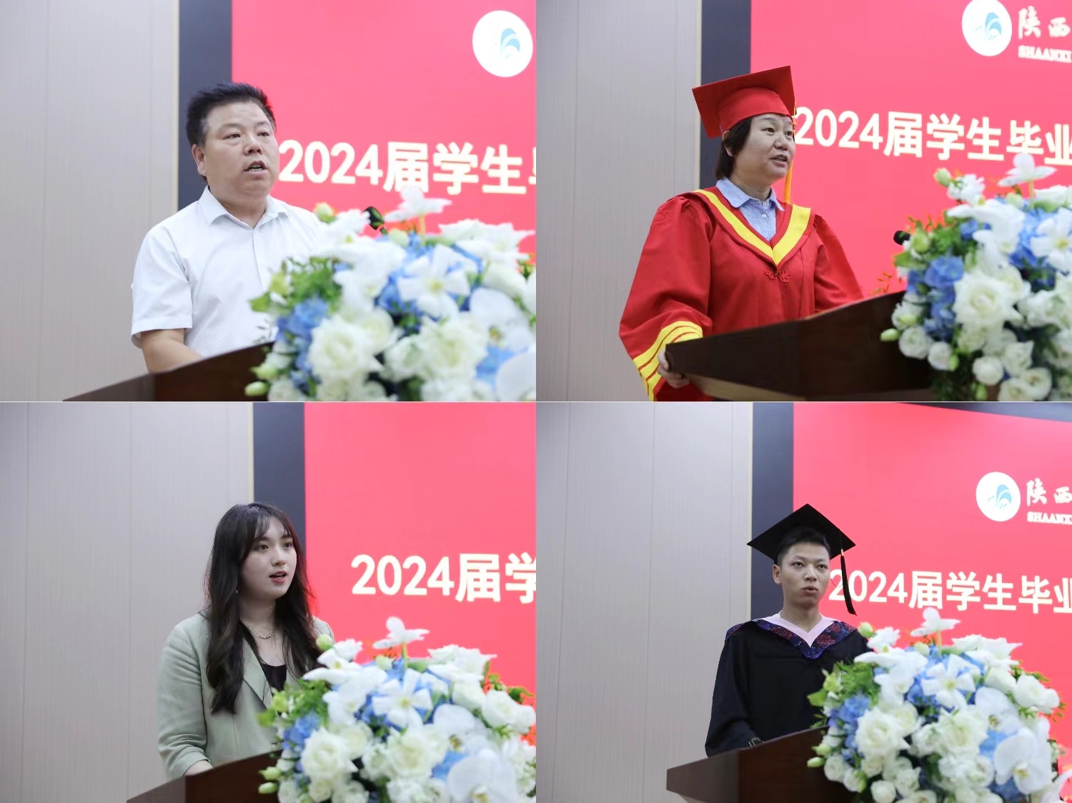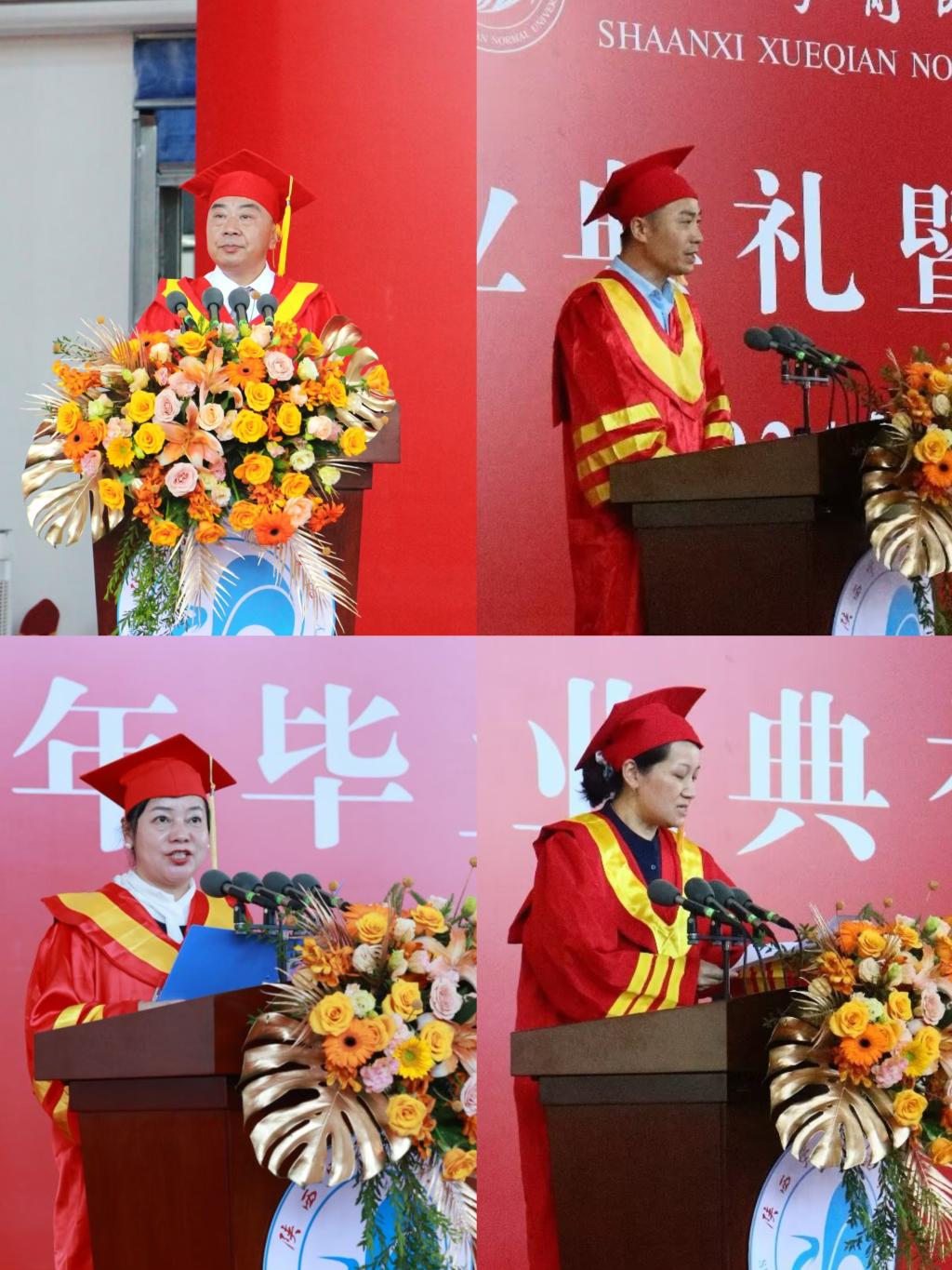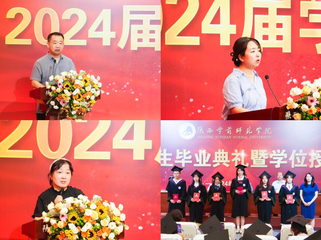 毕业短视频回顾了2024届毕业生大学的点点滴滴——难忘的师恩、珍贵的友情、成长路上的坎坷、收获成功的喜悦。一帧帧美好的画面令在场师生感动不已。毕业生代表赵思婕深情回忆了大学四年难忘的瞬间,和同学一起走过校园的每一个角落,相遇皆是缘分。她真诚感谢老师的谆谆教诲,感谢学校搭建各类活动、比赛的平台,让同学们有机会提升自己。她表示会用一生去诠释“厚德博学”校训、“勤学善思”学风、“知行统一”校风,用行动和奋斗书写属于陕师院,属于新时代的华彩篇章。
