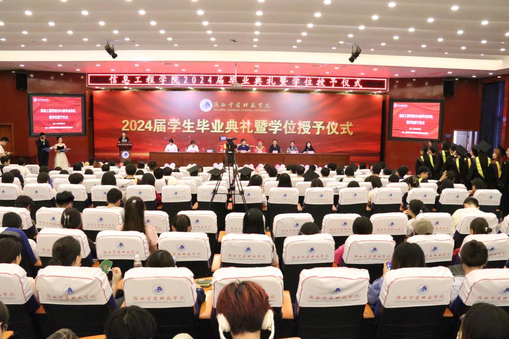 【信息工程学院】6月21日下午,信息工程学院“追光筑梦、一路生花”2024届毕业典礼暨学位授予仪式在图书馆学术报告厅隆重举行。信息工程学院党政领导班子、各系主任、教师代表、全体辅导员、2024届毕业生及在校生代表近300余人参加,典礼由学院学工办主任主持。