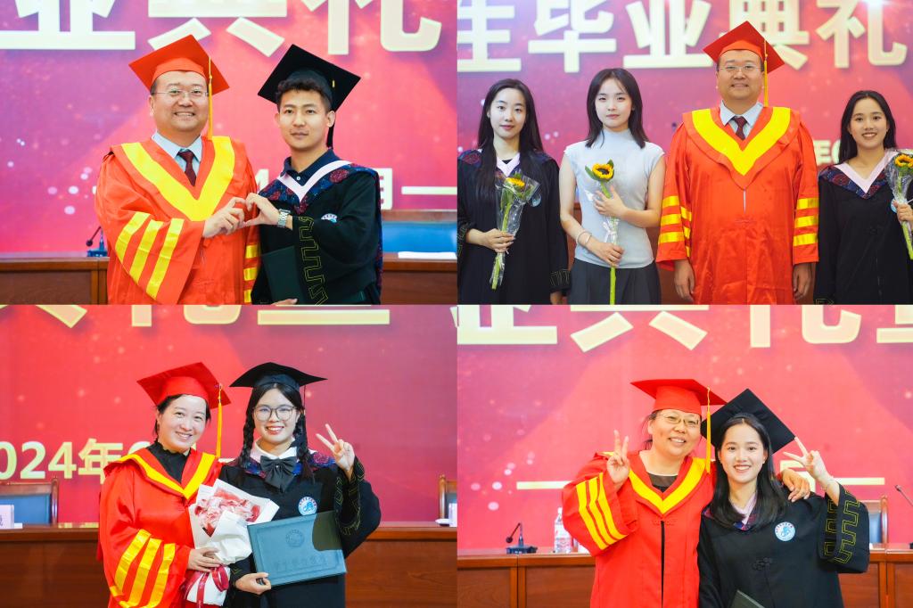 典礼在庄严的国歌中拉开帷幕。学院党委副书记张晔宣读了准予2024届学生毕业的相关决定以及授予2024届本科毕业生学士学位的相关决议。副院长丁剑洁为所有毕业生颁发学士学位证书,院长李宏飞为毕业生逐一拨穗正冠,并合影留念。