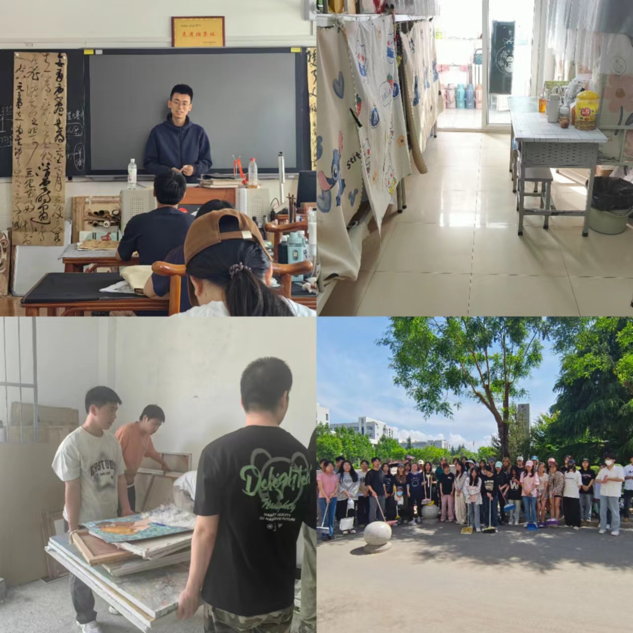 为充分发挥劳动育人功能,引导广大青年大学生形成正确劳动观,激发劳动热情,2024年4-6月美术学院在学生社区、专业教室等地开展了劳动教育实践系列活动。
