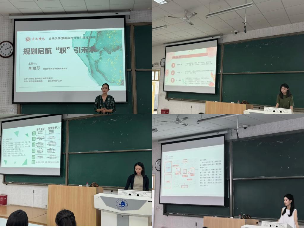 5月31日下午,音乐学院在二教C3举行《规划启航“职”引未来》主题宣讲。此次宣讲活动由我院舞蹈教师李丽莎和三位舞蹈学专业毕业生主讲,舞蹈学本科专业21级、23级全体同学参加。