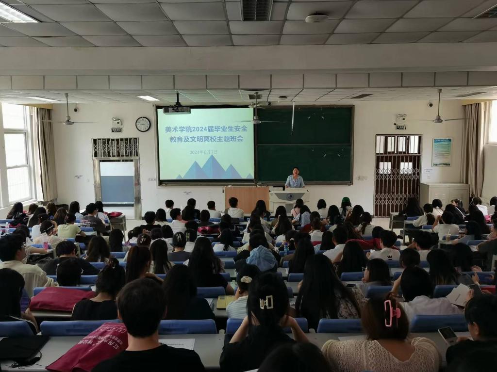 为营造健康、文明、有序、和谐的毕业生离校氛围,增强毕业生安全意识,做好美术学院2024届毕业生文明离校教育和安全教育,6月7日下午2点30,美术学院于博文楼C1阶梯教室召开2024届毕业生文明离校暨安全教育主题会,美术学院党委副书记于跃、毕业班辅导员和2024届全体毕业生参加了此次会议。