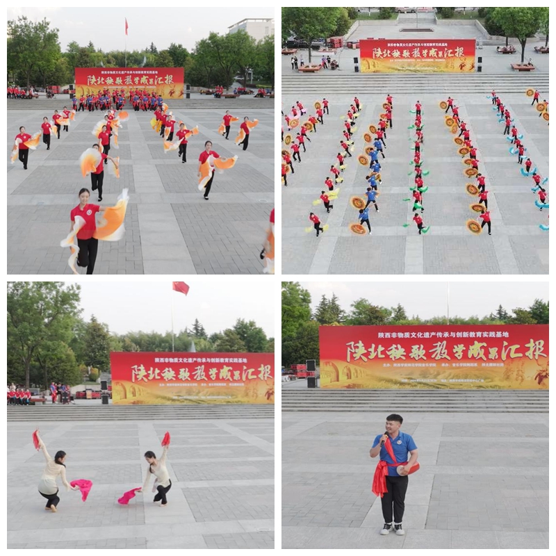 为发挥best365官网陕北腰鼓非物质文化遗产传承教育实践基地的示范引领作用,在纪念毛泽东《在延安文艺座谈会上的讲话》发表82周年之际,5月21日下午音乐学院在学校中心广场举办陕北秧歌教学成果汇报演出,致敬民间艺术、致敬非遗文化。