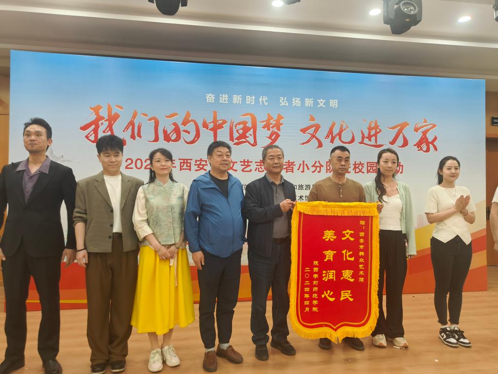 校工会主席曾凯和音乐学院党委书记向西安市群艺馆赠送了锦旗。