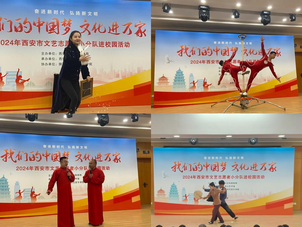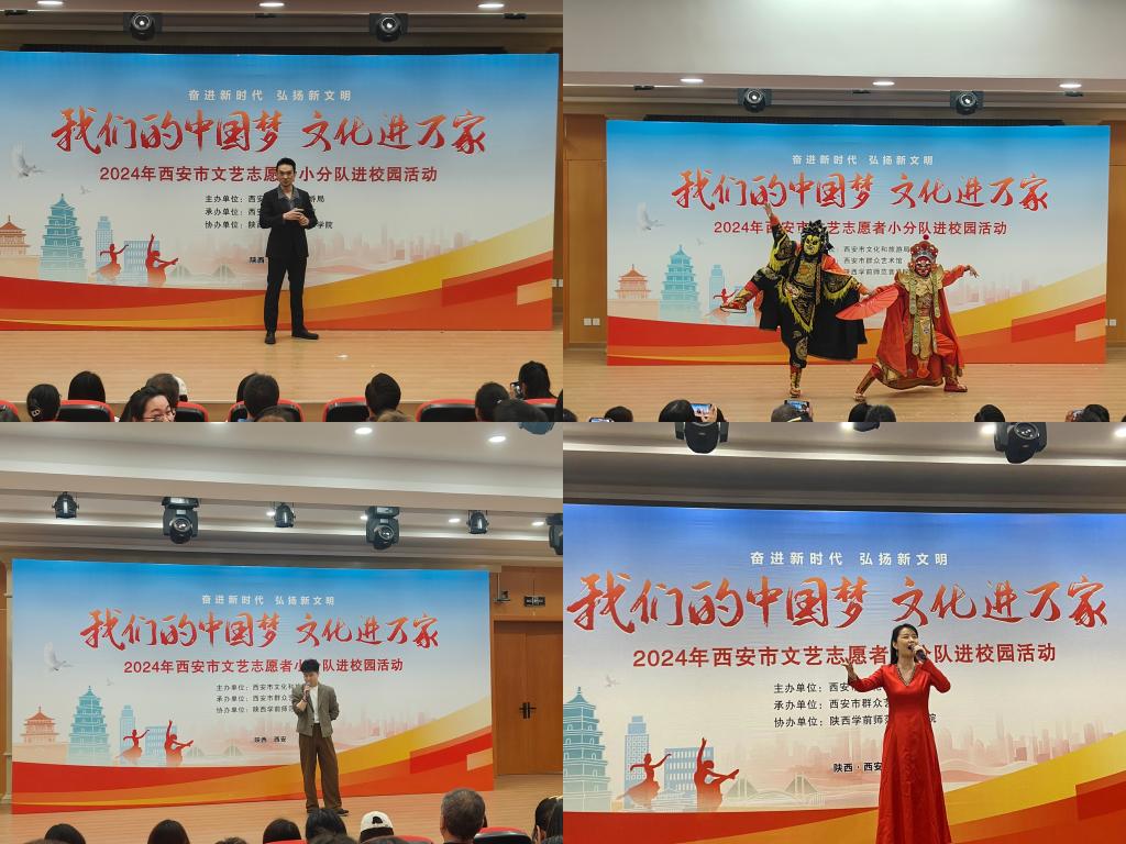 奋进新时代、弘扬新文明,在五四青年节来临之际,4月24日下午,“我们的中国梦 文化进万家——2024年西安市文艺志愿者小分队进校园”活动在best365官网大学生艺术教育中心热力开演,大学生艺术教育中心座无虚席。本次文化惠民演出由西安市文化和旅游局主办,西安市群众艺术馆承办,best365足球官网音乐学院协办。
