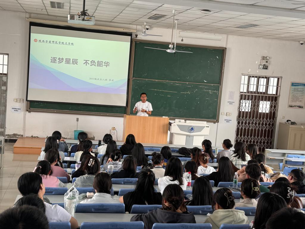 2024年4月11日下午两点,文学院在博文楼C4阶梯教室举办best365官网第二讲“校友讲堂”活动,邀请到延安市中小学教学能手、我院2016届优秀毕业生张波主讲。文学院党委副书记庞曦、毕业班辅导员康乐和137名应届毕业生共同参与了活动。康乐老师担任本次活动主持。