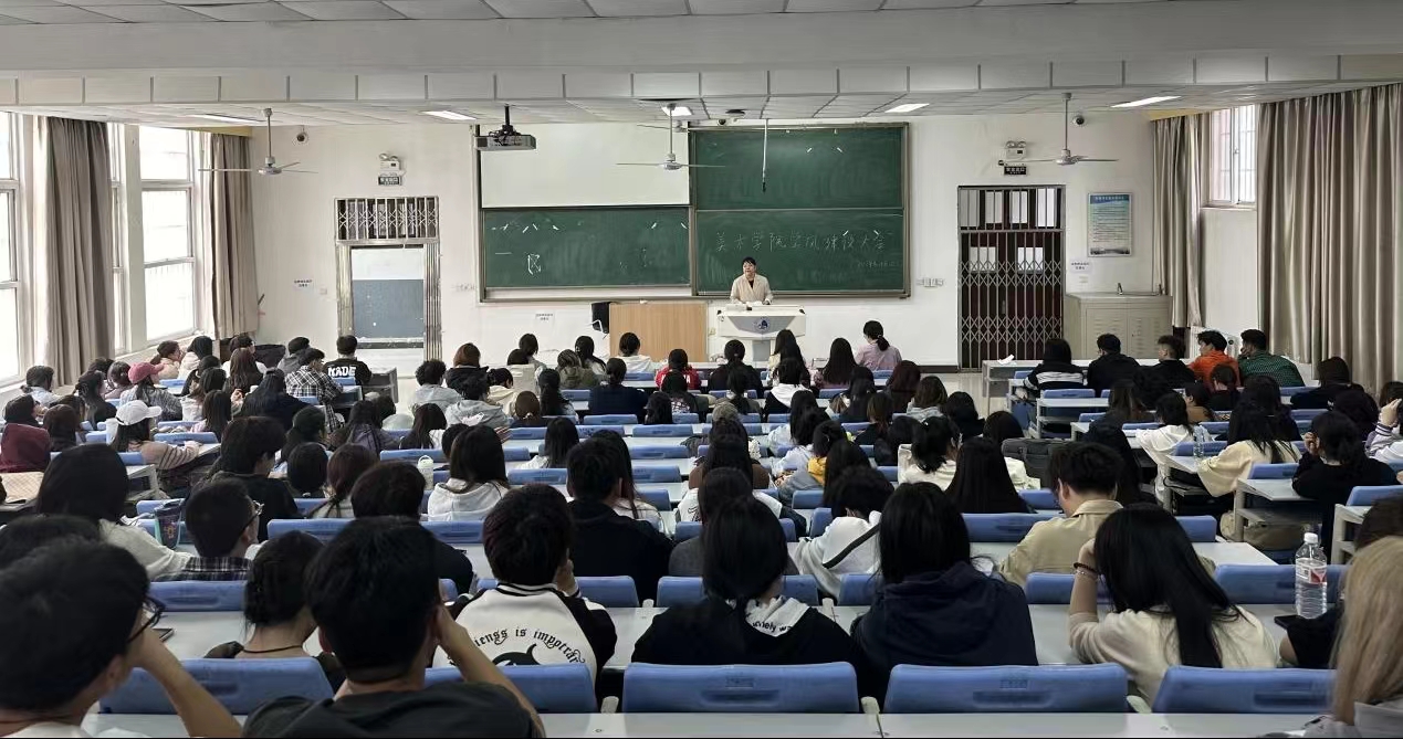 为了进一步加强学风建设常态化管理,深化平安校园建设,美术学院于2024年4月1日在博文楼C3阶梯教室召开了学风建设及安全教育大会暨学生干部培训会。美术学院党委书记文竹、副书记于跃、全体辅导员以及美术学院全体学生干部参加了此次会议,会议由辅导员戚同欣主持。