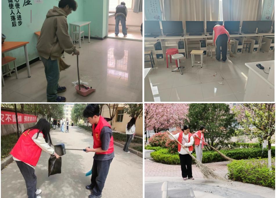 三、以志愿服务为升华,在奉献中彰显劳动价值。团学组织及学生社团积极组织信工学子进社区,进图书馆、实验室和机房,进党员活动室开展义务劳动。在校内义务劳动过程中,同学们饱含热情,积极投入到清扫活动中,细致擦拭桌椅窗台,认真打扫地面灰尘,耐心整理图册书籍,认真检查,不留死角,将图书馆、机房与党员活动室等公共区域打扫干净,为师生提供了干净明亮的工作学习环境。