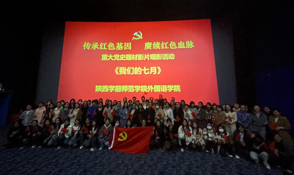 为深入学习贯彻习近平新时代中国特色社会主义思想和党的二十大精神,认真落实习近平总书记关于“用党的历史教育党员、教育干部、教育群众尤其是教育青少年”重要指示精神,外国语学院党委于2024年3月14日下午组织学院全体教职工、党员学生100人观看重大党史题材电影《我们的七月》。