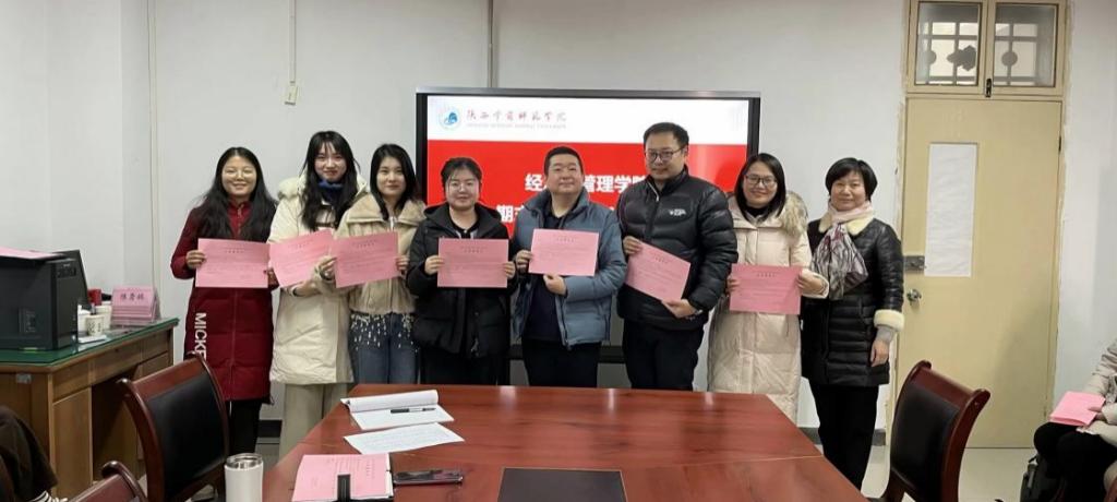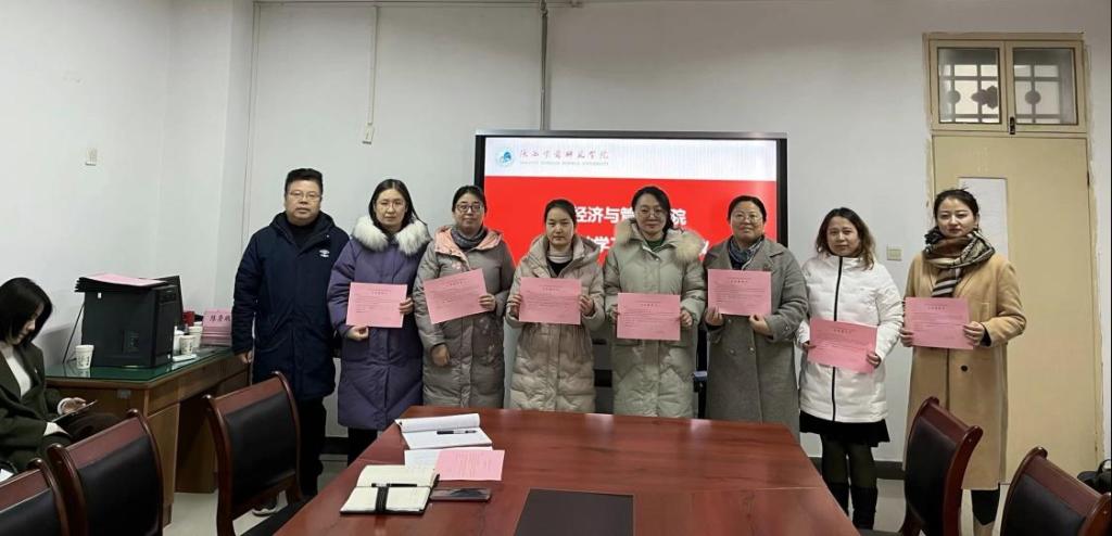 崔洁院长首先肯定了各位教师在本年度工作中取得的成绩和付出的努力,为大家在推进学院高质量发展中作出的贡献表示感谢。崔院长要求以试卷论文资料、专创融合教育教学改革、产教协同育人模式创新、学生实习就业为抓手,对标对表做好本科教学相关工作;同时高度重视新一轮产业革命和社会变革对专业、课程带来的重大影响,认真研究未来发展趋势,对学院的专业发展方向有宏观判断,并在微观层面迅速响应,跟上时代发展的步伐开拓创新。随后崔院长宣读了2023年经济与管理学院“创新创业”教育教学专题教改项目的立项名单,强调创新创业教育改革是新时代高等教育发展的重要方向,也是经管院提升人才培养质量、服务地方经济社会发展的必然要求;鼓励教师们加强对创新创业教育系统研究与实践,勇于创新,积极探索适应地方需求的创新创业教育模式,为学院的发展注入新的活力。张建辉书记和崔洁院长为教师们颁发了立项证书。这是我院继2021年“学科竞赛”、2022年“课程思政”专题后的第三批院级教改立项,学院通过“院级-校级-省级”三级教改项目培育建设机制,凝练特色,守正创新,不断提高教育教学改革的成效。