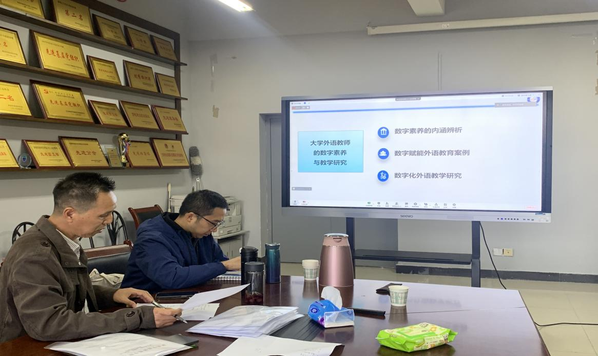 外国语学院温宏社教授在总结时表示,胡教授的讲座紧密围绕国家推进教育数字化战略的方针,并以教学实证案例为导引,对数字技术在大学外语教研中的应用进行了细致入微的讲解。本场讲座高屋建瓴,内容丰富、信息量大,非常具有启发性,对提升学院教师的数字素养、助力大学外语教学和研究的发展具有重要意义。