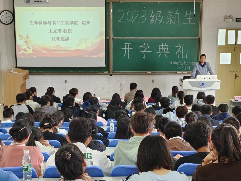 为做好2023级本科新生入学教育,帮助新生尽快适应大学校园环境,教育引导广大新生更好地融入新的学习和生活环境,顺利踏上大学学习生活新征程,2023年9月27日下午,生命科学与食品工程学院在积学楼C4阶梯教室召开2023级新生开学典礼暨入学教育大会。学院党政领导,各系主任、教师代表,2023级辅导员以及2023级全体新生参加开学典礼。大会由学院党委副书记郑美霞主持。