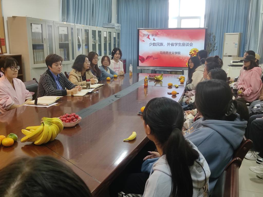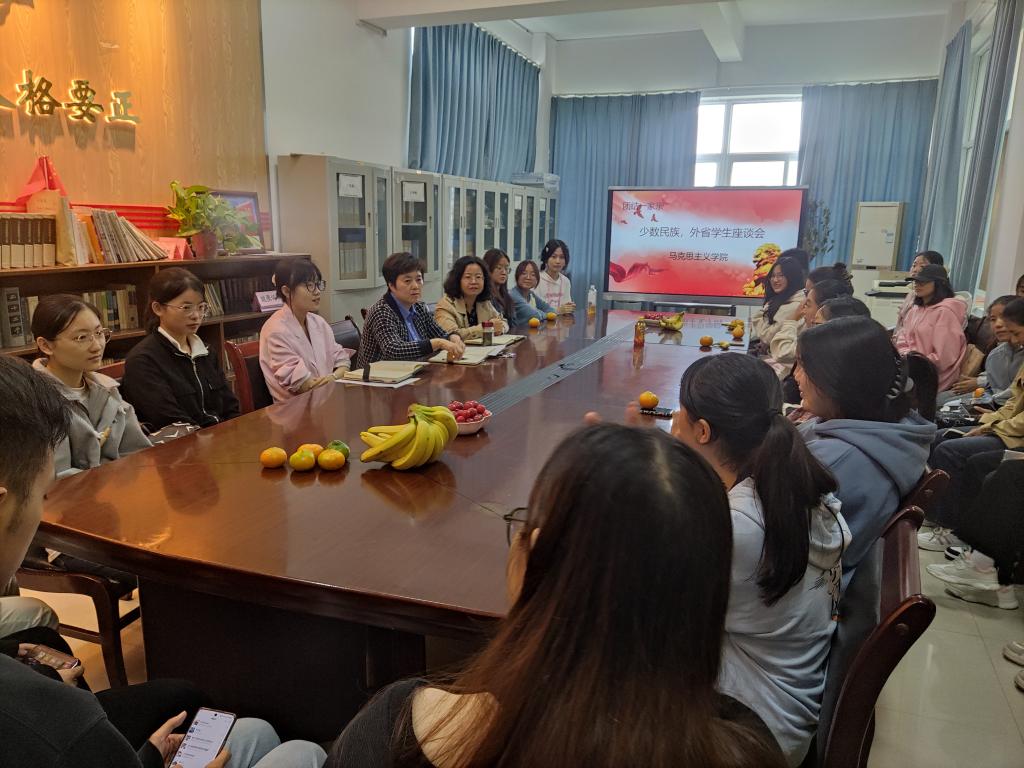 9月27日下午,马克思主义学院外省及少数民族学生座谈会在博文楼C1会议室召开。学院党委书记高萍、副书记白艳、学生辅导员陈茜及外省籍少数民族新老生代表共35人参加座谈,围绕新生进入大学后的日常生活、课程学习及个人发展等话题进行了深度交流。