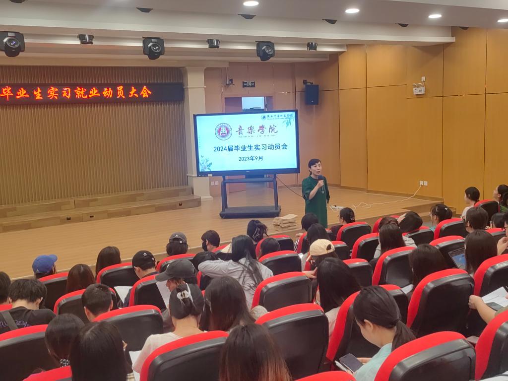 为帮助2024届毕业生将专业理论知识运用到实践中,明确实习要求,把握实习方案,引导同学们做好实习前的各项准备,确保毕业生实习、就业工作的顺利展开,9月15日上午音乐学院在best365官网大学生艺术教育中心举办了教育实习就业动员大会。实习带队教师、毕业班辅导员及学院2024届毕业生参加本次会议。