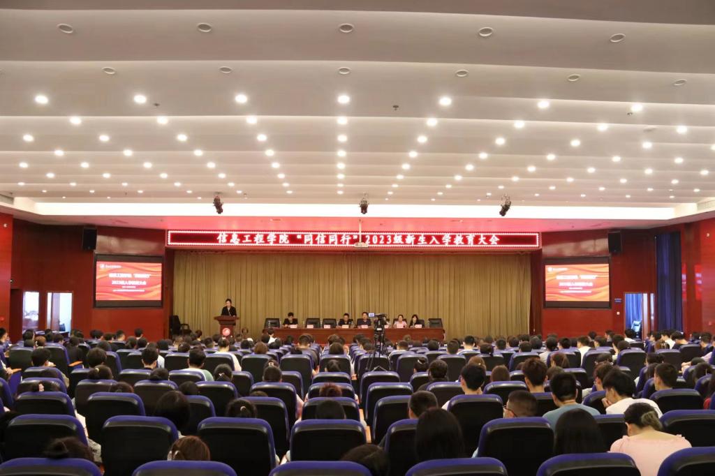 9月8日下午,信息工程学院在图书馆学术报告厅召开了2023级新生入学教育大会。信息工程学院党政班子全体成员、各系教师代表、全体辅导员以及2023级全体新生参会。大会由信息工程学院副院长王强主持。