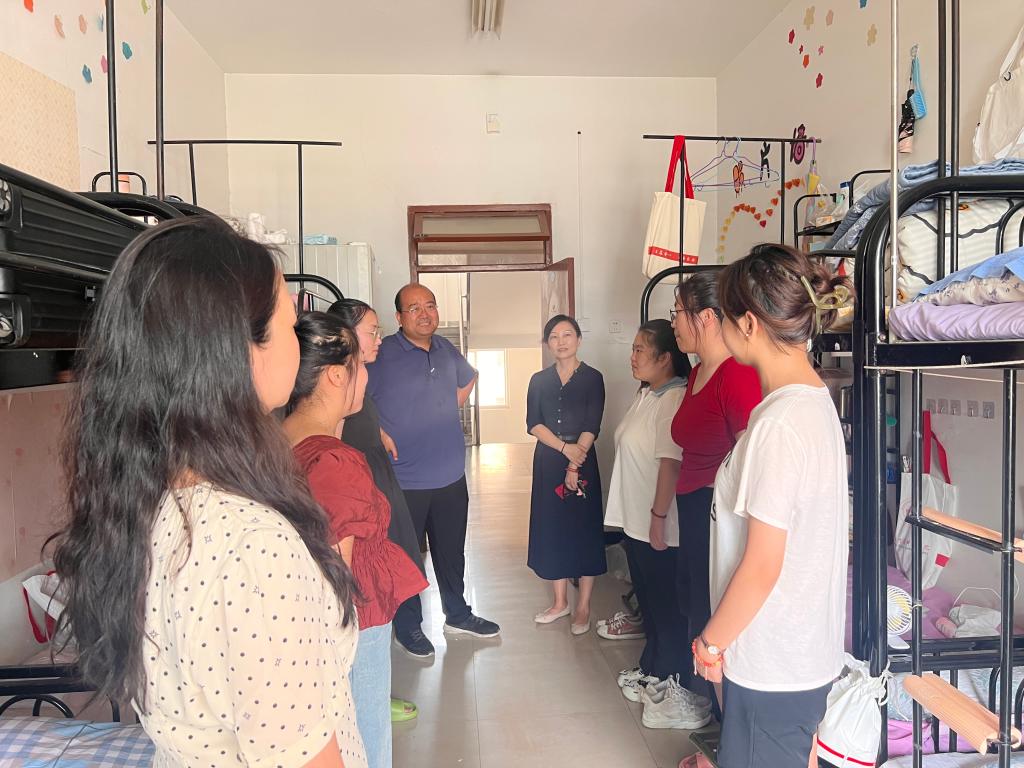 9月8日下午,学院党委书记杨阳、院长牛文明、学院党委副书记庞曦及新生辅导员王彩旭一行前往新生宿舍进行慰问走访。在走访过程中,学院领导详细了解新生入学以及入住情况,积极回答新生的各种问题,鼓励新生要珍惜大学生活,勇敢面对未来的挑战,努力学习,积极实践,砥砺前行。领导和老师们还特别看望了少数民族学生,询问他们的学习生活情况,鼓励她们尽快融入大学生活,并要求辅导员要及时了解少数民族学生在生活、学习上遇到的问题,及时帮助、妥善解决。此次慰问走访不仅拉近了学生与老师之间的距离,更让新生们感受到了文学院大家庭的温暖和团结。