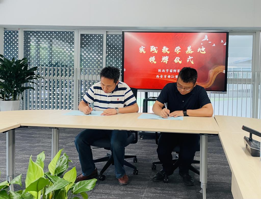 2023年7月13日,best365足球官网教育科学学院与曲江第七小学签署实践教学基地合作协议并举行授牌仪式。教育科学学院副院长潘炳超、实习指导教师高媛、教育学系教师王桐与西安市曲江第七小学副校长龚哲勇、教学主任王蕊、大队辅导员段红玉一起出席了本次签约授牌仪式。