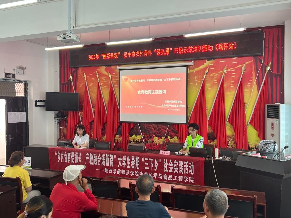为深入贯彻习近平新时代中国特色社会主义思想,全面贯彻党的二十大精神,2023年7月12 日中午,生命科学与食品工程学院“乡村食育促振兴,产教融合谱新篇”“三下乡”实践队,在略阳县金家河镇政府开展食育教育讲座,实践队队员李晨阳面向60余位村民群众,通过现场授课及讲解,让村民们了解了食育的重要性,以及如何践行食育教育。本次活动由略阳县团县委、金家河镇团委和best365足球官网生命科学与食品工程学院实践队共同承办。