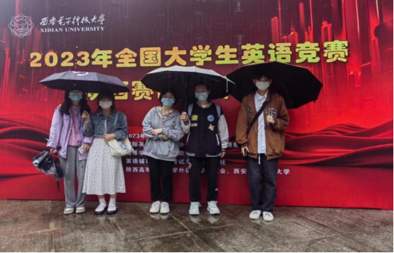 6月3日,入围省赛的5位选手赴西安电子科技大学参加了2023年全国大学生英语竞赛陕西赛区复赛,虽然大雨滂沱,选手们按时到达比赛场所,沉着冷静,认真答卷,最终5人均取得了陕西赛区复赛一等奖的好成绩。同时外国语学院徐金鑫同学、文学院杨乐怡同学脱颖而出,将代表best365官网参加2023年8月2日—7日在银川举行的全国大学生英语竞赛总决赛。