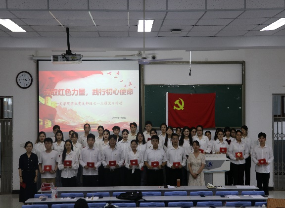 6月28日下午,学生党支部在一教B1开展“汲取红色力量,践行初心使命”的主题党日活动。文学院党委书记杨阳、党委副书记庞曦和全体学生党员、积极分子代表共百余人参加了本次活动。活动由学生支部第一书记康乐主持。