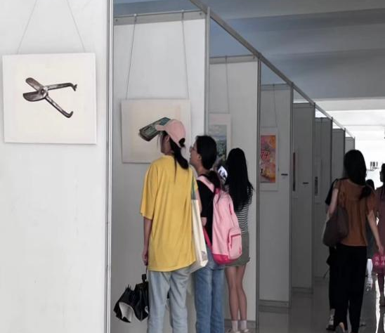 经过美术学院精心筹备,于2023年6月26日,获奖作品于博文楼一楼大厅展出,本次展演共计三天,吸引了诸多学生驻足观看。