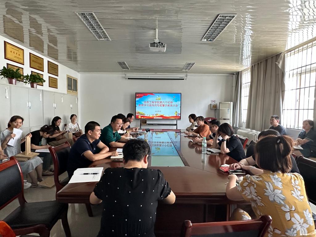 6月29日上午,信息工程学院在积学楼A204会议室召开第六个纪律教育学习宣传月警示教育专题会,全体党员教师参加了会议。