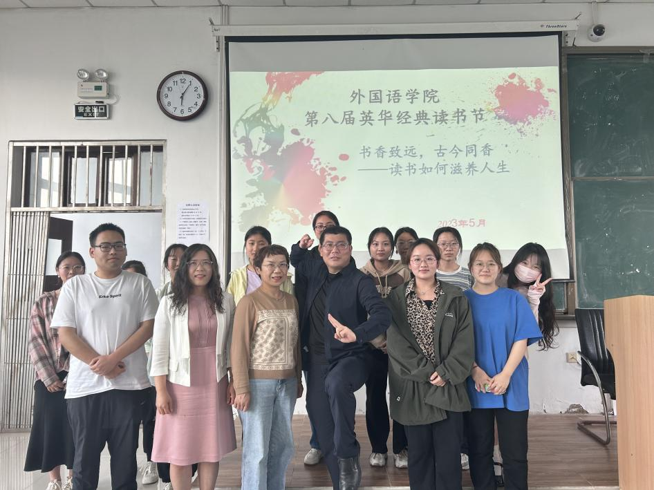 张院长最后指出外国语学院“英华经典诵读”活动的开展,旨在以阅读为契机,帮助学生把读书变成自觉的行为,以此养成读书的习惯,将读书转化成自己的生活方式。通过阅读欣赏、共读共赏古今中外的经典著作,使学生汲取世界文化精髓,志存高远、勇于担当,让读书点亮学生未来的路。