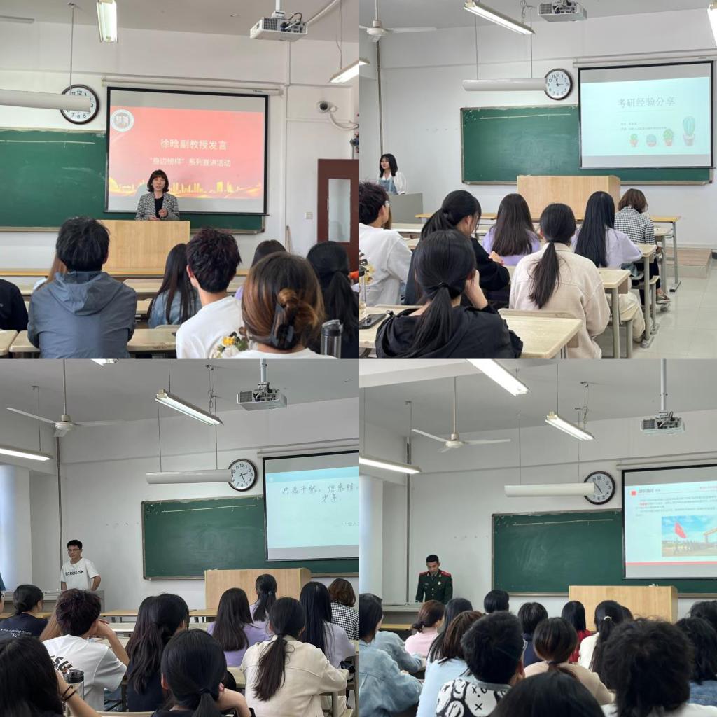 5月11日-12日,我院分别在博文楼B401、B403教室召开“学长讲堂”主题宣讲活动,由已被西安建筑科技大学录取的张舒淼、被东华理工大学录取的赵启阳和被宝鸡文理学院录取的折花花担任主讲,学院副院长陈秀端教授、党委副书记陈璐老师,人文地理与城乡规划系主任徐晗副教授出席本次宣讲活动。活动伊始,陈秀端副院长讲述了当前考研形势,强调备考心态的重要性,并号召同学们从现在做起,做好时间规划,心存理想,迎难而上。随后,三位主讲人从备考时间、资料获取、择校技巧、学习方法等几个方面详细分享了自己的备考经验,并强调考研比拼的不仅有学习,更是耐力、心态、思想的综合较量,希望低年级同学们脚踏实地、持之以恒,努力实现人生目标。接着,徐晗副教授从院校选择、时间规划、家校支持等方面讲述了历届考研学生的成功经验,强调在院校选择时,切勿盲目跟风,要结合自身实际情况,多与专业老师沟通,做出最优选择。最后,党委副书记陈璐对本次活动总结发言,感谢了以上三位同学精彩的宣讲,并呼吁同学们珍惜时光,积极进取,能够学习榜样、争当榜样、超越榜样,展现经管学子昂扬风貌。