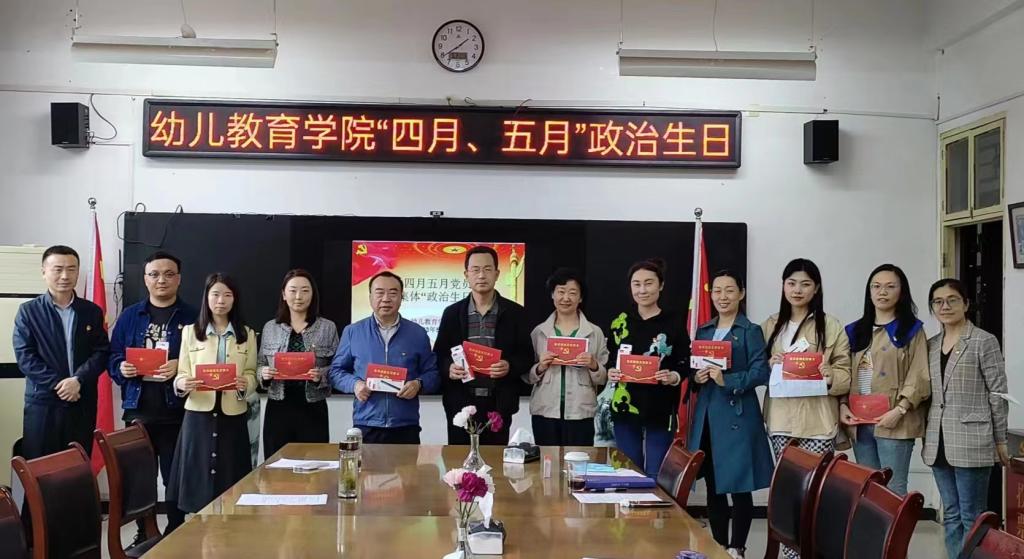 会后,幼儿教育学院党委为迎来“政治生日”的党员们送上了生日贺卡和礼物,并合影留念。