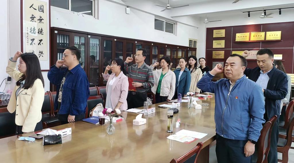 全体党员同志面向党旗重温入党誓词,坚定有力的宣誓声表达了每一位党员踔厉奋发的信念和决心。