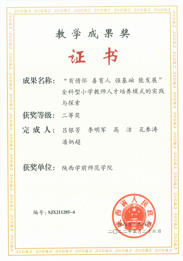 近年来,小学教育专业师生经过不懈的努力,取得了丰富的教学、科研成果,教师主持国家社科基金项目1项、教育部人文社科基金4项,省级科研项目、教改项目10余项,发表权威、核心学术论文50余篇,出版专著、教材6部。获陕西省、西安市哲学社会科学优秀成果奖4项;陕西省高等教育教学成果奖1项,基础教育教学成果奖2项。学生获批立项国家级和省级大学生创新创业训练项目20余项。