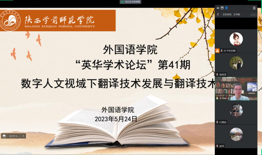 5月24日下午,北京外国语大学王华树教授应邀做客外国语学院“英华学术论坛”第41期,作了题为《数字人文视域下翻译技术发展与翻译技术应用》的学术报告。本次学术报告由外国语学院王雨副院长主持,best365官网师生100余人以腾讯会议在线方式参加。