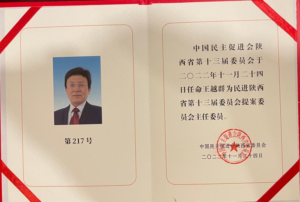 据悉,民进陕西省第十三届委员会吸收了一批年富力强、热心会务、具有较强代表性和较高参政议政能力的骨干会员进入专委会,形成了省直为主体、涵盖各市的专业人士大联合,标志着民进陕西省委会专委会事业翻开了新的一页。这次王越群教授被任命为提案委员会主任委员,充分体现了对王教授作出的突出成绩及社会影响力的高度肯定,期待王教授在新的岗位上为统战事业作出更大贡献。