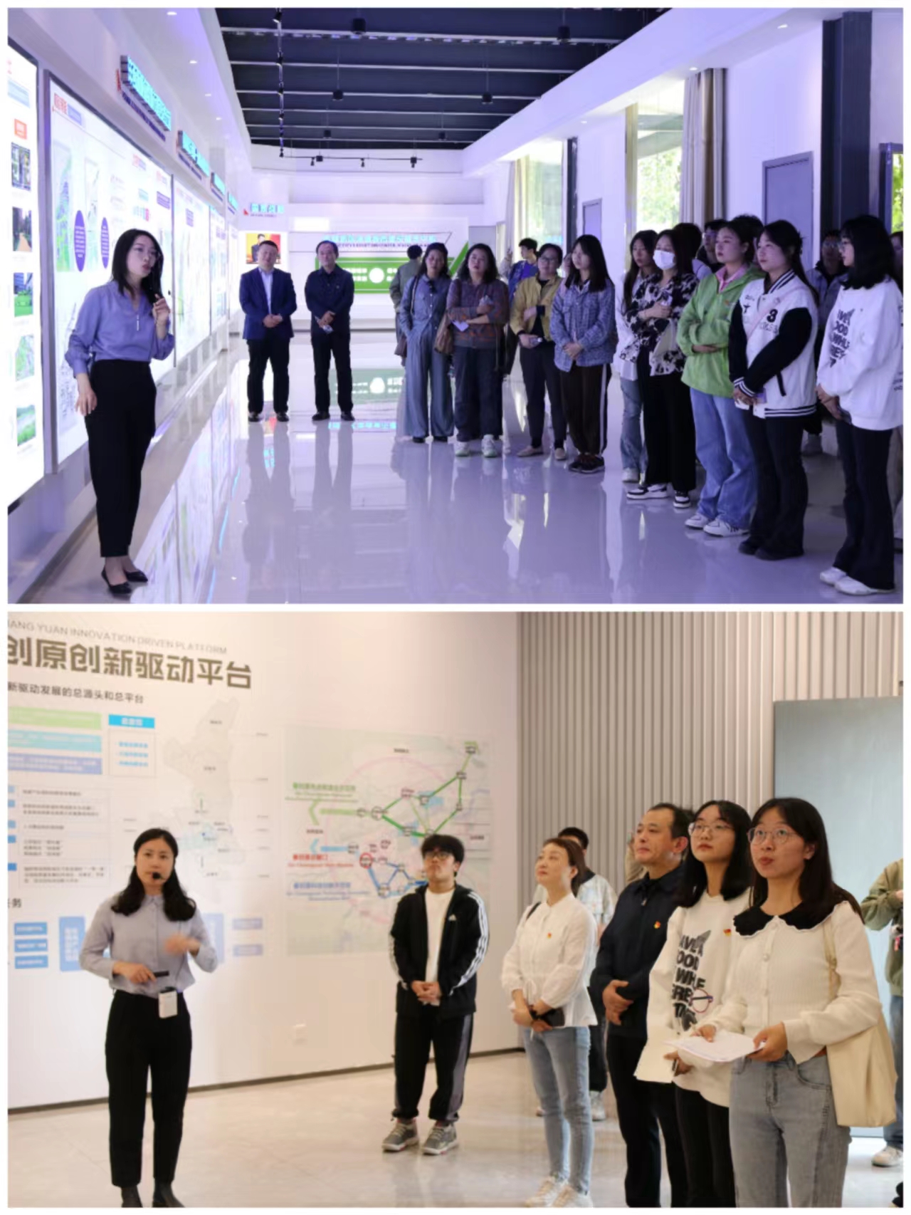 西咸新区沣西新城海绵城市是2019年首批国家海绵城市试点项目。在沣西新城海绵城市建设实践展馆,师生党员跟随讲解员的节奏,认真聆听了海绵城市的规划设计理念、传统的地下排水管网如何逐渐被绿廊、植草沟、蓄水花园、下凹式绿地等“地形竖向”设计所代替、海绵城市建设如何利用技术创新使硬化路面使其更具透水性,让降雨等形成的地表水能更好实现自然渗透,完成净化和积蓄。在科技创新岛和秦创原创新驱动平台,党员师生还了解了秦创原创新驱动平台重大历史使命:建设立体联动“孵化器”、科技成果产业化“加速器”和两链融合“促进器”三大目标,加快打造具有鲜明特色和竞争力的高水平平台,使之成为全省创新驱动发展总平台、全省创新驱动发展总源头。