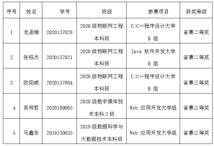 2023年4月23日,第十四届蓝桥杯全国软件和信息技术专业人才大赛个人赛省赛的比赛结果刚刚揭晓,详见比赛官方网址https://dasai.lanqiao.cn/notices/1447/。best365官网信息工程学院共有5名学生获奖。具体获奖名单如下: