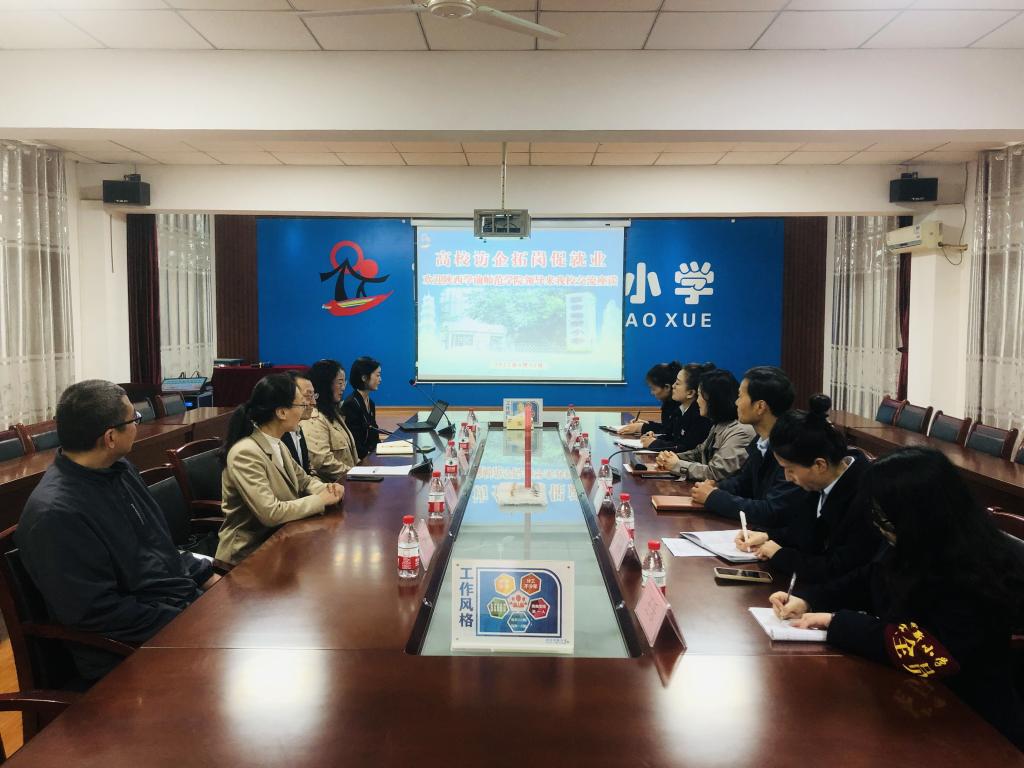 为进一步落实教育部、省教育厅及学校关于“访企拓岗”促就业专项行动工作部署,拓宽毕业生就业渠道,提升就业质量,4月21日上午,数学与统计学院院长李宏飞,党委副书记(主持工作)田彩萍,副院长丁剑洁、张萌一行4人前往经开区西安经新小学开展“访企拓岗”专项行动。团市委青年企业家协会副秘书长李侦一同前往并主持交流活动。