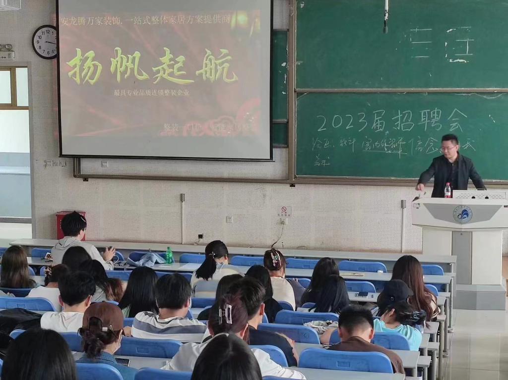 美术学院于4月18日下午16:00时,在积学楼B2阶梯教室举办2023年春季第二次美术类专场招聘会暨访企拓岗就业专项行动。招聘会邀请西安龙腾万家装饰有限公司、西安爱克斯未来文化科技有限公司、西安爱克斯未来职业技能培训学校、西安爱克斯未来影视动画有限公司四家单位参加。
