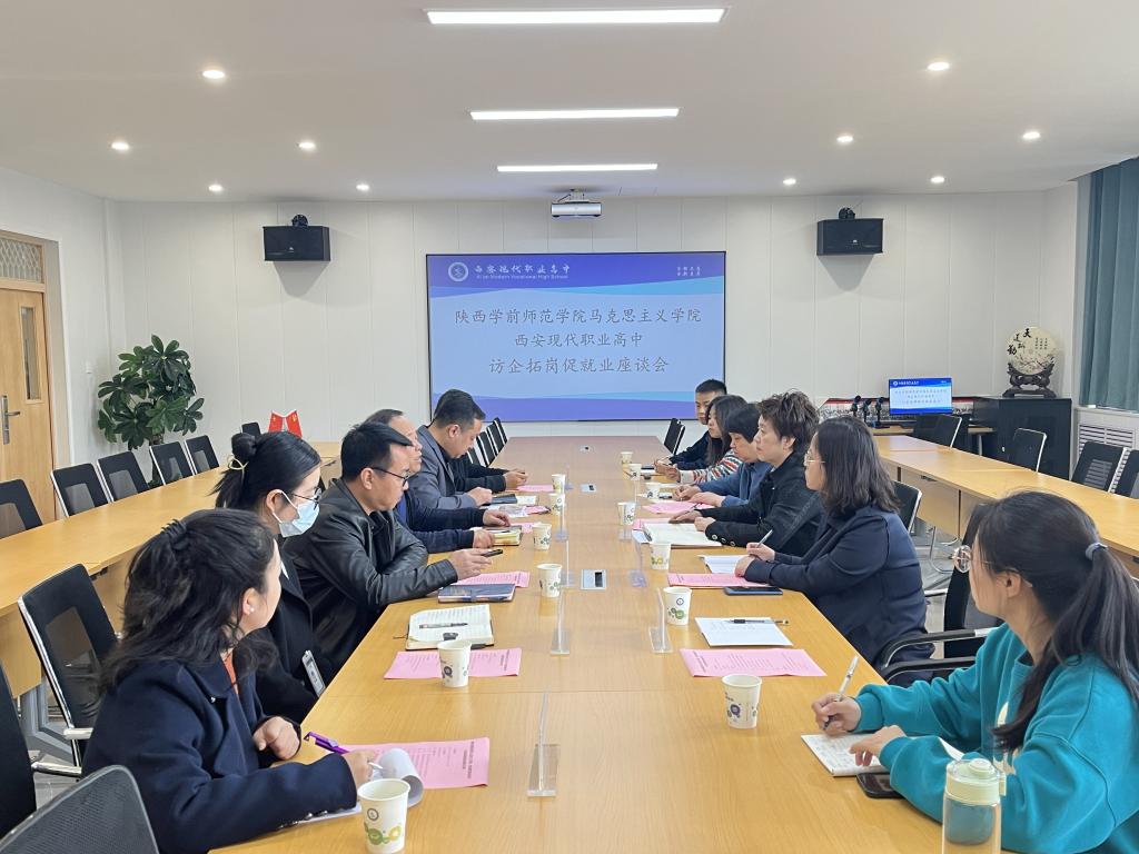 为贯彻落实中省关于高校毕业生就业工作的决策部署,深入落实高校毕业生就业工作“一把手”工程,加快健全高校毕业生市场化社会化的就业创业工作机制,为2023届毕业生开拓更多就业创业岗位和机会,4月6日上午,best365足球官网马克思主义学院党政领导班子带队赴西安现代职业高中开展访企拓岗专项活动。辅导员和毕业生代表参加了活动。