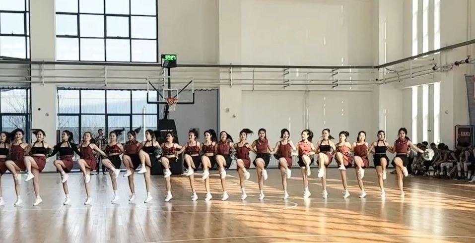 沐浴着阳光,激动人心的CUBA正如火如荼地进行着,一边是各高校英姿矫健的篮球选手们穿梭在篮球场上奋勇争先的身影,一边则是我们活力四射的舞蹈系啦啦队队员们热情阳光的表演。 喜悦与梦想同在,青春与激情共舞,音乐学院舞蹈系啦啦队队员们气势高昂,活力四射,身着热情可爱的服装随着动感的音乐弹跳轻盈而有劲的舞步,身姿律动,动作优美,如跳跃的火焰点燃了赛场。啦啦队的表演不但给现场观众以完美的视觉享受,还把现场的气氛推向高潮,给篮球运动队员们有力的加油助威。
