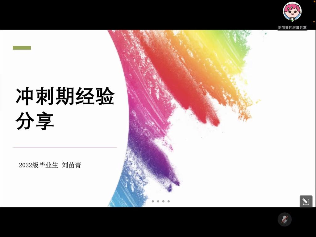 首先,两位受邀同学从不同角度梳理了研究生考试考前容易出现的心理和学业问题,针对性地提出了具体的应对措施:合理安排时间、考前学习提分技巧、考前心态调整办法等,牟盼同学特别分享了关于考研调剂过程的具体注意事项和解决办法。