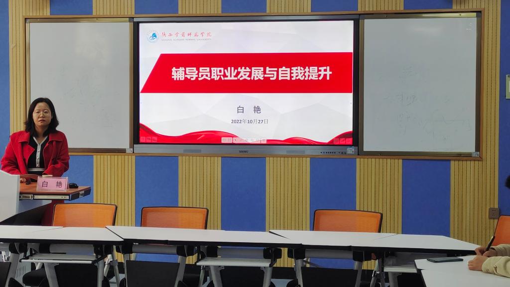 马克思主义学院党委副书记白艳老师以“辅导员职业发展与能力提升为主题”,从自身的工作经验出发就怎样提高辅导员的自身能力水平、实现个人职业规划等方面做了分享。首先白艳老师通过自己的科研成果展示给辅导员详细讲解了课题类别以及申报流程;其次通过介绍马克思主义学院开展的特色活动彰显思想政治工作能力在辅导员职业能力提升中的核心地位;最后鼓励新任职辅导员要用好辅导员工作室这个凝聚载体,守正创新,真心做好学生的知心人、引路人和贴心人。