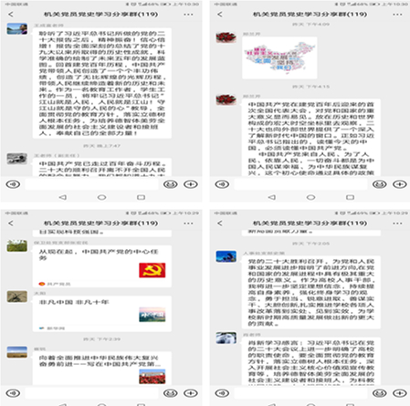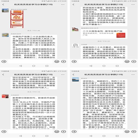 上午开幕会结束后,机关随即掀起了热学热议热潮,广大机关干部尤其是处级干部充分利用“党员党史学习微信群”平台,结合自身岗位实际,抒发切身感受与学习体会,当天群内分享互动次数达八十余次。