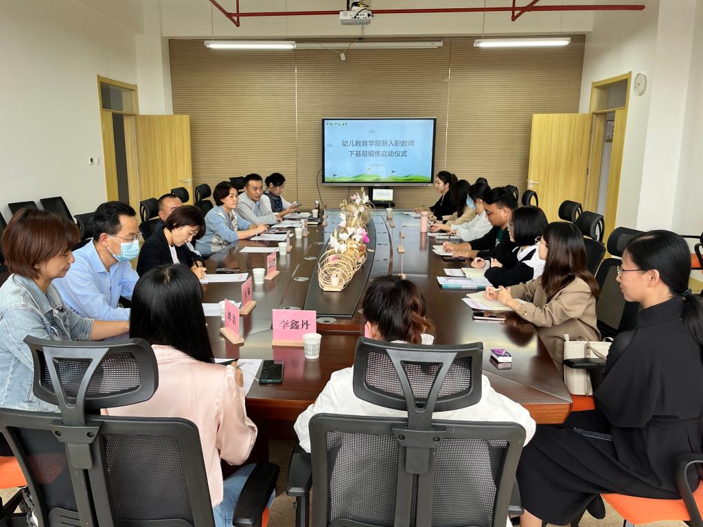 为进一步加强完善幼儿教育学院青年教师培养体系,创新学前教育专业教师培养模式,根据《学前教育专业青年教师赴附属幼儿园实践锻炼实施方案》(陕师院师函〔2022〕22号)的文件精神,幼儿教育学院于2022年9月21日(星期三)下午,在best365足球官网长安校区附属幼儿园会议室召开学前教育专业青年教师赴附属幼儿园实践锻炼启动会。幼儿教育学院班子成员、附属幼儿园班子成员、学院2022年新进教师及锻炼指导教师参加启动会。会议由幼儿教育学院党委副书记(主持工作)王继康主持。