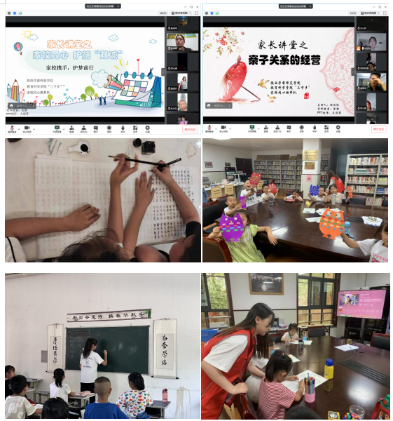 基于前期调研成果,开设十期专题家长讲堂,定制化开发家校共育学习内容,搭建专属线上家长教育平台,组织家庭教育指导工作,以互联网面对面的形式,深入家长,内容涉及护航双减、幼小衔接、亲子关系等,家长们积极参与互动,氛围热烈,表示大有助益。同时开展特色支教服务,除绘画、阅读、手工制作等教学活动,还将学院特色“三笔字”课程带下乡,多角度全方位促进学生全面发展,使受教儿童可以拓展自己的视野,提升感知能力,敢于实践,敢于创新。