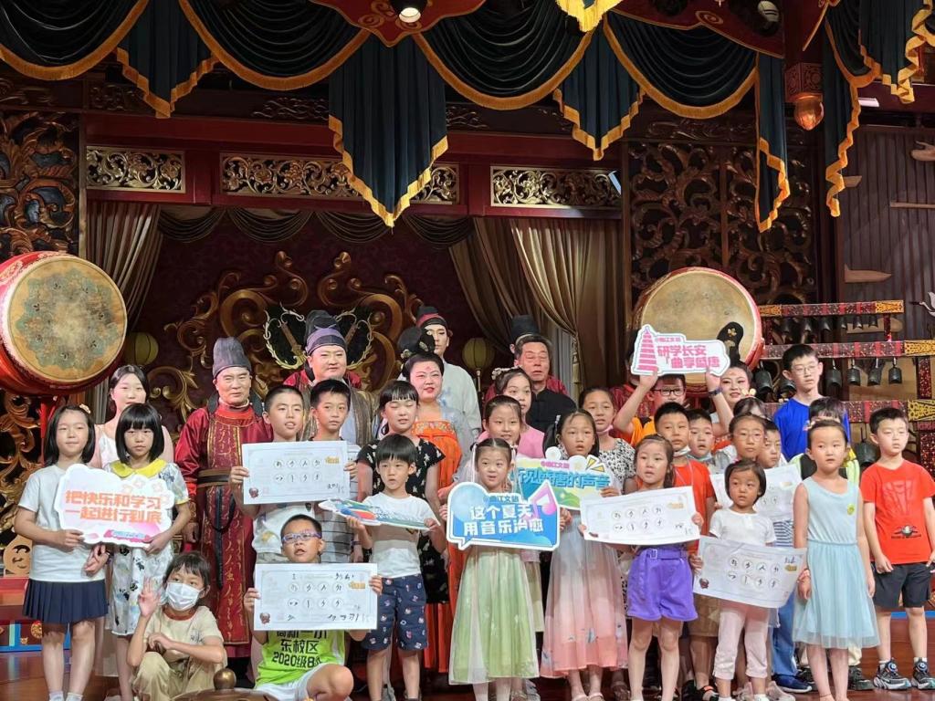 实践过程中,线下队员观摩了东仓鼓乐社老师们在“长安十二时辰”的日常排练,一名音乐学大二年级的队员说:“他们的演奏中加入了近现代民乐,许多作品雅俗共赏,听起来非常生动。”东仓鼓乐社社长范炳南先生为实践队员讲解乐社的历史与渊源,乐师胥小杰老师为实践队员讲解鼓乐演奏相关知识。队员们在随后时间研习工尺谱和以工尺谱谱写的乐曲《朝天子》。疫情之下,队长鲍佳怡同学运用腾讯会议,对其余11名同学进行线上教学,将实地考察的结果和所学知识进行传播。实践队员竭力传播鼓乐魅力,弥补外地同学未到现场的遗憾。