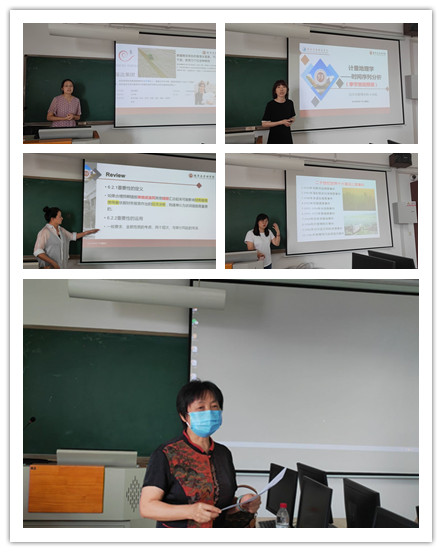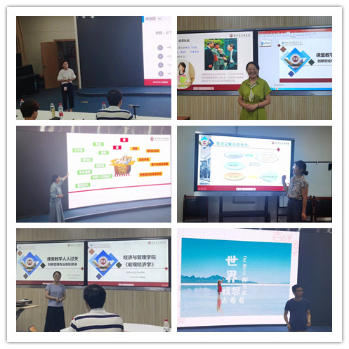 7月14日上午,孙军娜、霍云霈、刘阵、张敏和毛东共五位教师分别就下学期的课程进行25-30分钟的课堂教学展示,展示专题分别是环境分析与理性决策、旅游产生的条件、地球物质组成与圈层结构、消费税、绩效管理。