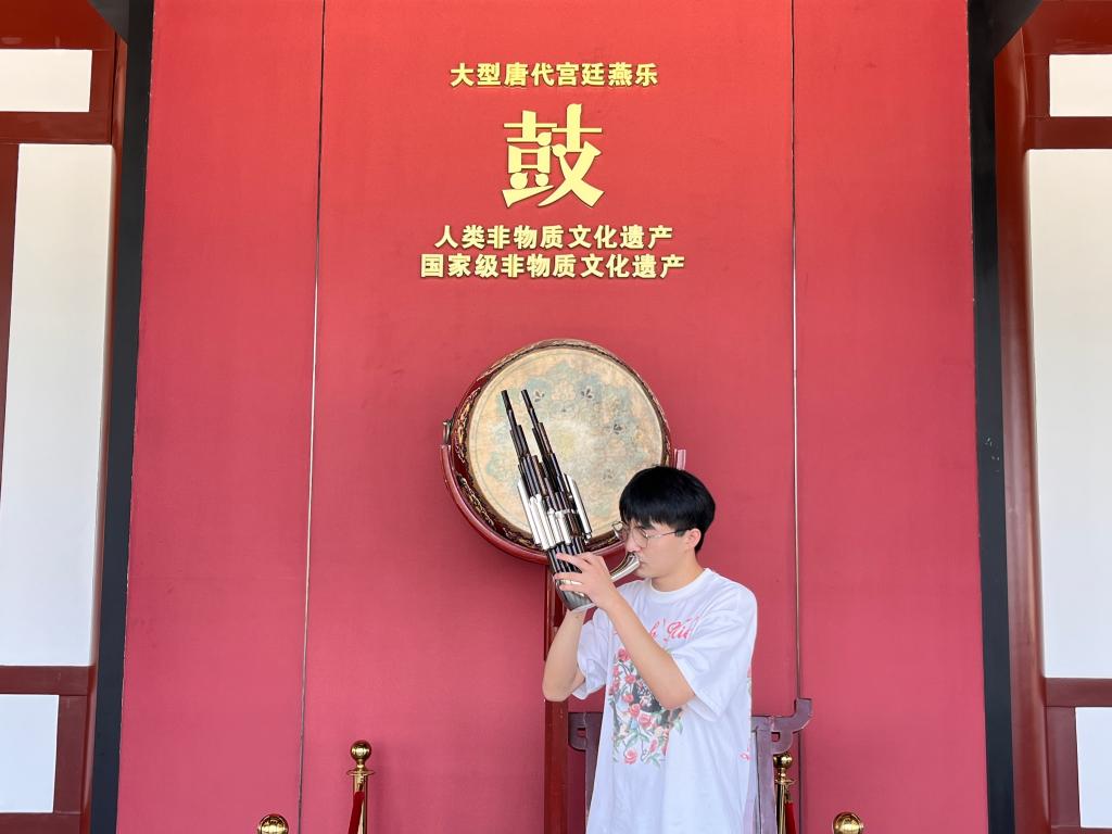 秦风鼓乐社社长“非遗守护人”李坤晖说,“非遗,体现着中国智慧、承载着中国价值、凝聚着中国精神。西安鼓乐作为具有地方特色的非遗,发掘和守护这一优秀文化可持续发展动力,是每一位身在西安的陕师院音乐学师范生的责任。近两年的社团学习,我带领团队寻访西安鼓乐的三大流派,了解西安鼓乐的前世今生,学习工尺谱的识读和演唱,掌握了笙的演奏。特别是近期走访东仓鼓乐社,真切体验了西安鼓乐的现代魅力。我将发挥自身特长,积极学习和传播西安鼓乐,讲好我的非遗故事,通过我们青年力量推动非遗的当代实践,吸引更多人关注身边的非遗文化,为保护好、利用好身边非物质文化遗产,传承中华优秀传统文化,落实中华优秀传统文化创造性转化、创新性发展的要求。”