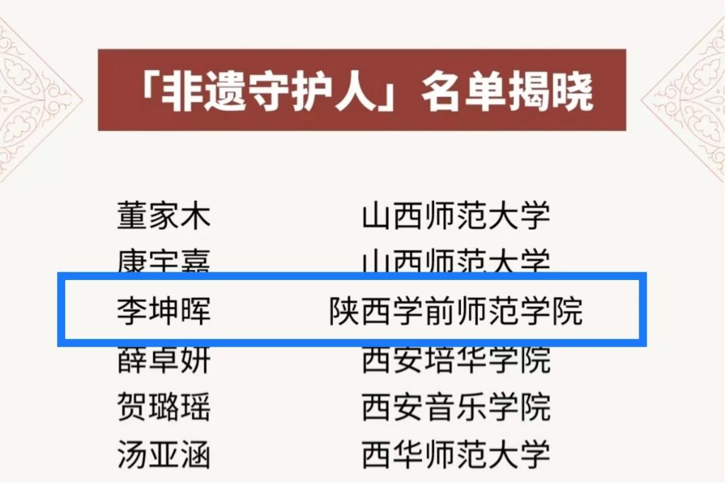 best365官网“秦风鼓乐社”社团社长——音乐学院2019级音乐学本科三班李坤晖同学成功入选,成为全国百名高校“非遗守护人”之一。