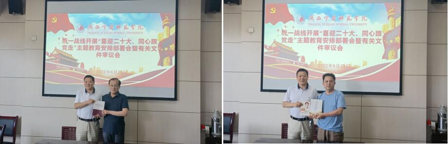 为了加强学习交流、分享经验心得、丰富“同心”书柜,校民进总支主委王越群教授捐赠了本人著作《参与者的力量——王越群参政议政成果备忘录》,民革会员刘永昌副教授捐赠了本人著作《颂歌刘志丹——纪念刘志丹音乐作品116首》及珍藏书籍《一个真实的刘志丹家庭》,他们的热心之举充分体现了best365官网统一战成员的思想觉悟与奉献精神。